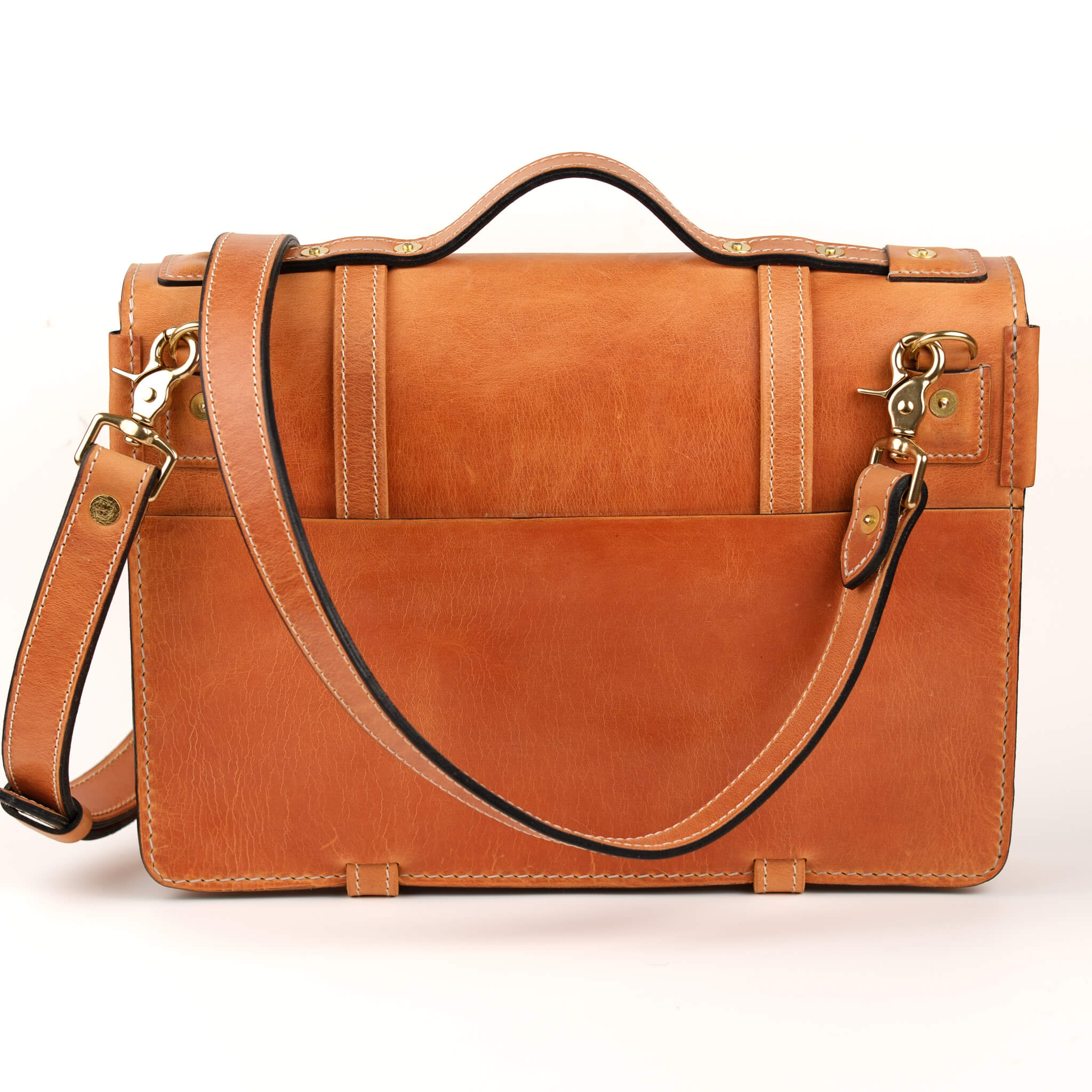 Handmade full‑grain, vegetable‑tanned leather briefcase with solid brass hardware. Professional, durable, and customizable. Designed to age beautifully.
